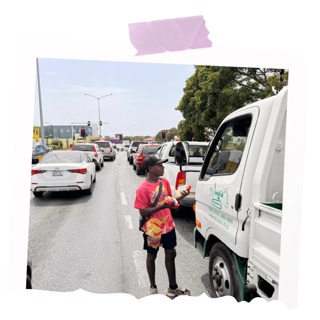 Picture yourself waiting at a traffic light after a long drive under the Caribbean sun. The air is warm, the road is busy, and suddenly someone approaches your window with an ice-cold bottle of Fresku Juice.